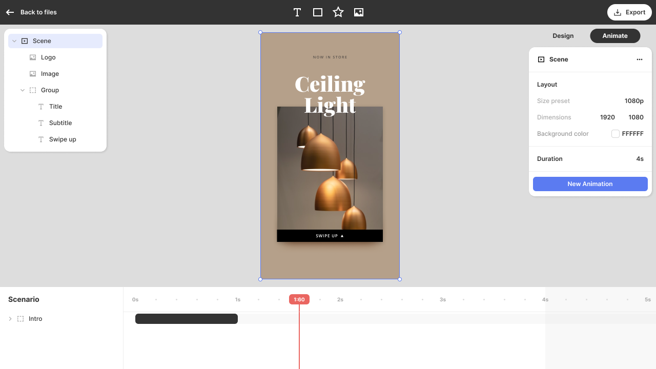 With Jitter's animation presets, you can add motion to your designs in just a few clicks. And you can customize everything so that they recognize you instantly.